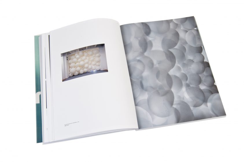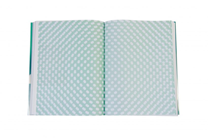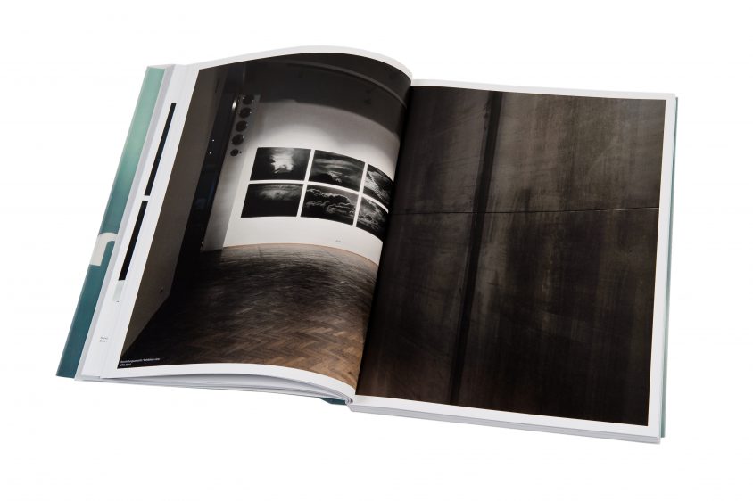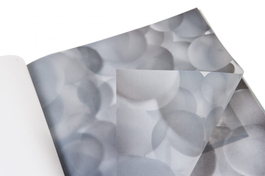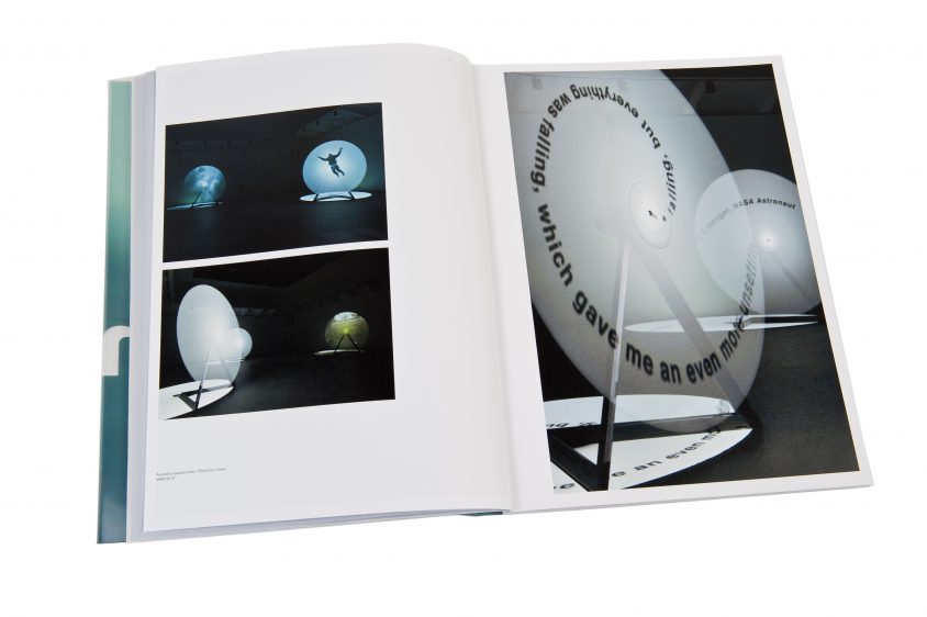Die Farbigkeit und das Licht des Kataloges nehmen Bezug auf die Transparenzen der Rotorinstallationen in der Ausstellung. Der bedruckte Schutzumschlag, der das Cover durchscheinen lässt, erweckt den Eindruck verschiedener Ebenen – in Anlehnung an den Titel In Between.