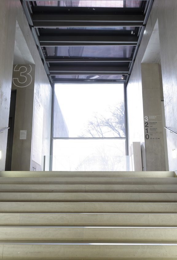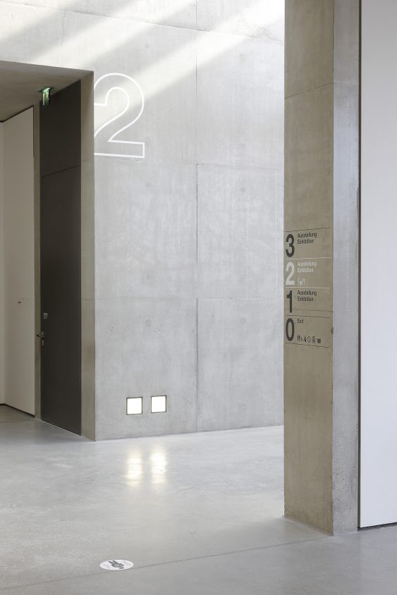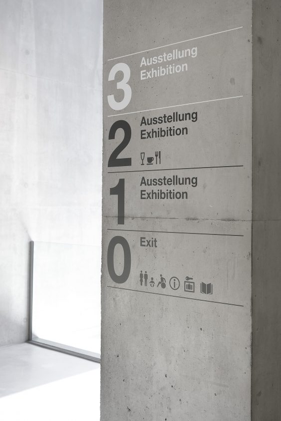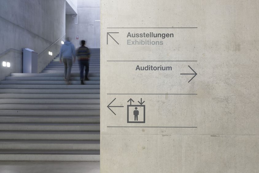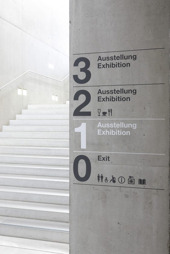 Unsere Entwurf des Orientierungssystems geht behutsam mit der beeindruckenden Architektur des Hauses um, setzt aber visuelle Akzente und bietet vor allem Orientierung im komplexen Gebäude.