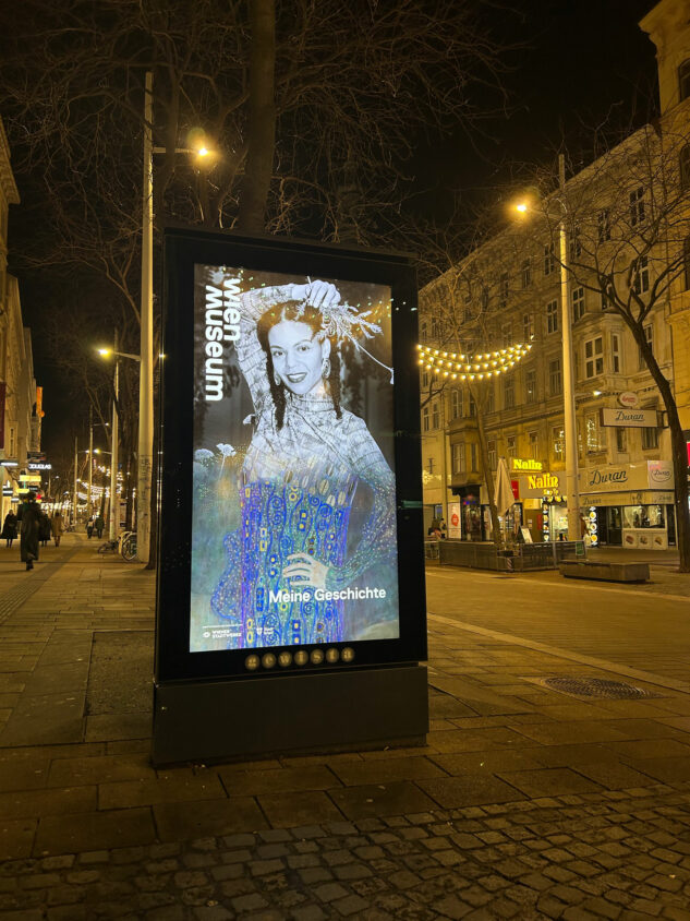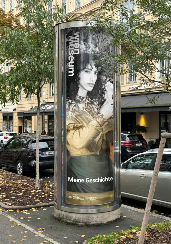 Meine Geschichte: Die Kampagne zur Neueröffnung des Wien Museums schafft eine persönliche Ebene zwischen dem Museum und seinem Publikum – das Museum als offenes Haus, das die Geschichte der Menschen bewahrt und erzählt. Der Claim betont die Relevanz des Museums für das Individuum und steht für Auseinandersetzung und Dialog auf Augenhöhe.